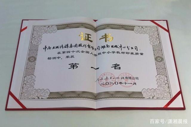 11 月 22 日,第 40 次全國人教版中小學教材印裝質量檢測工作會議在廣西南寧召開,中南出版傳媒集團股份有限公司湖南出版中心分公司蟬聯全國人教版中小學教材印裝質量檢測第一名,這也是繼 2008 年獲得全國教材質量檢測第一名后,湖南第三次獲此殊榮。